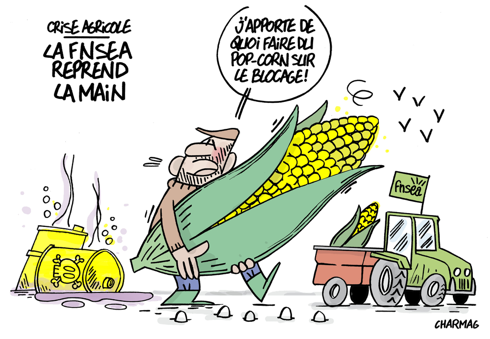 Pendant ce temps, la Coordination rurale (proche de l’extrême droite) multiplie les violences en toute impunité, voire avec l’accord de la police : tête de sanglier devant la Ligue de protection des oiseaux, local vandalisé d’un député écologiste, etc. Le gouvernement tolère la violence réactionnaire, mais criminalise la contestation paysanne.