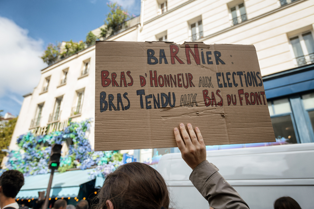 Lors du deuxième tour des législatives, la majorité des électeurEs ont fait barrage au RN et ont donné une majorité relative au Nouveau Front populaire. Pourtant, deux mois après, Macron nomme Barnier premier ministre. Il est le point d’équilibre entre la macronie et le Rassemblement National.