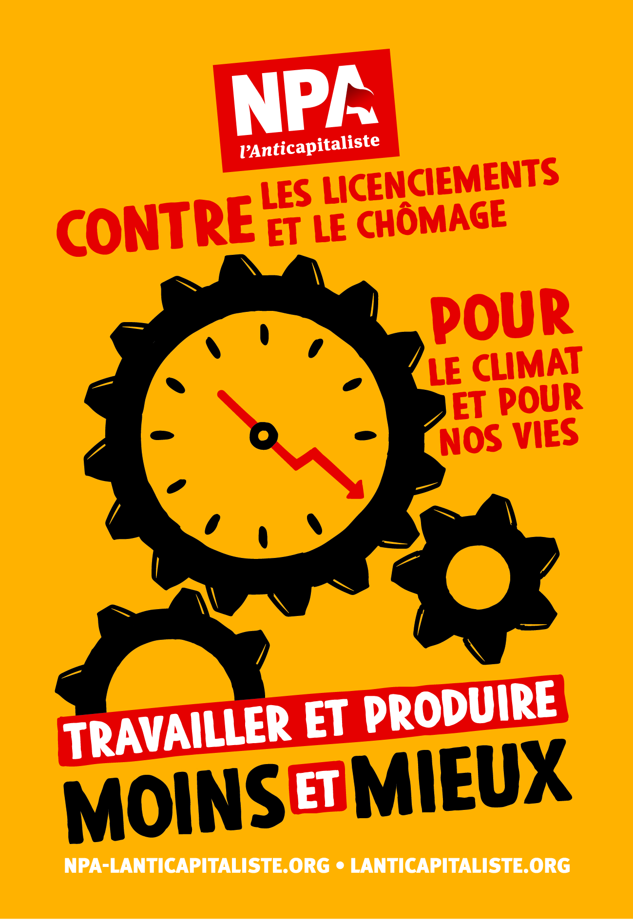 Affiche/Autocollant : « Contre les licenciements et le chômage. Pour le climat et pour nos vies. Travailler et produire moins et mieux »