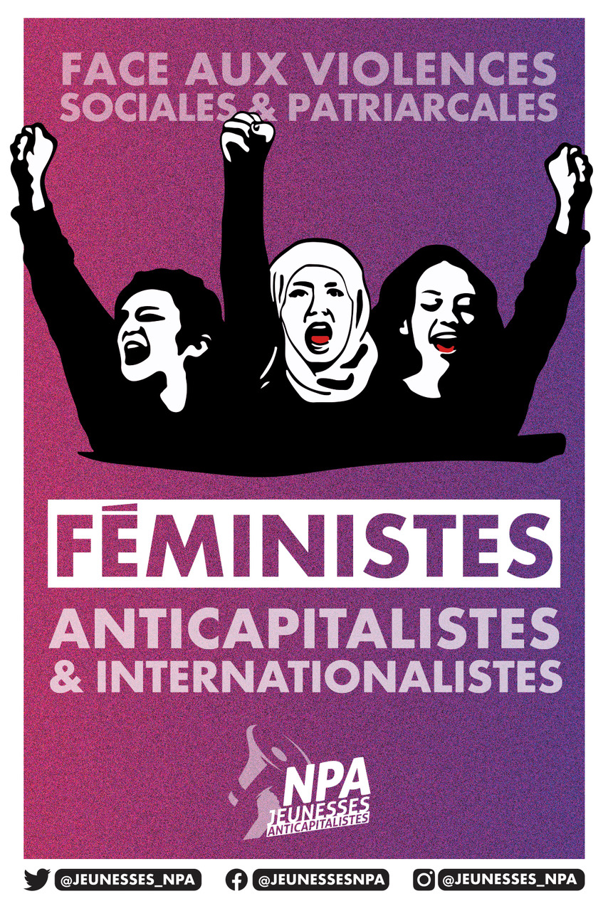 Autocollant des Jeunesses anticapitalistes : féministes anticapitalistes et internationalistes