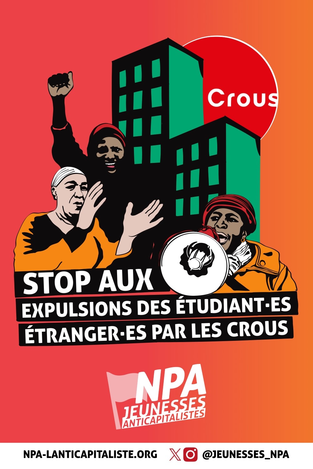 Autocollant JA : « Non aux expulsions des étudiantEs étrangerEs par les CROUS »