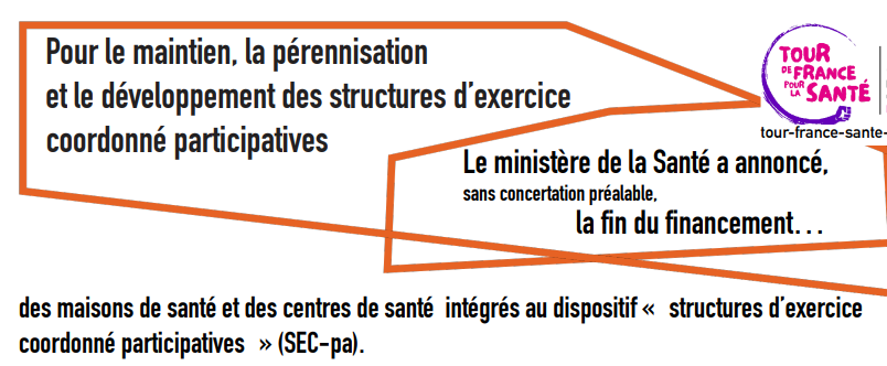 Dans un communiqué, la coalition Tour de France de la santé dénonce la fin du financement des structures d’exercice coordonné participatives (SEC-pa), annoncée sans concertation par le ministère. Intégrés à des centres et maisons de santé, ces dispositifs accompagnent des publics précaires via une approche globale. Les signataires exigent leur maintien et appellent à signer une pétition nationale.