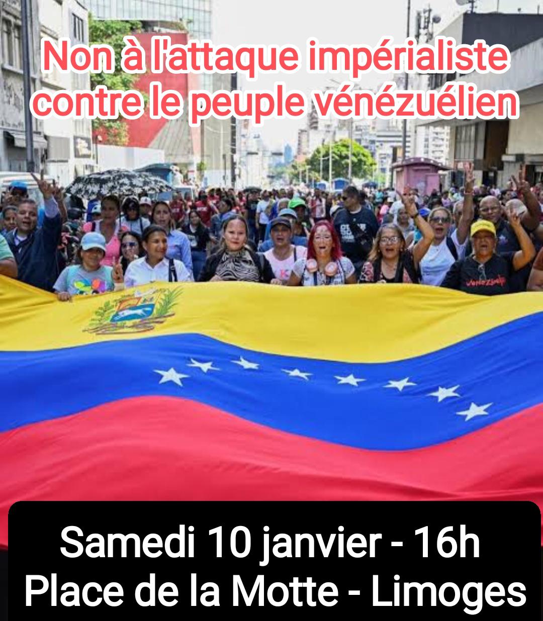 Samedi 10 janvier 2026 - 16h00 Contre l'attaque impérialiste au Venezuela, rassemblement samedi 10 janvier 2026, place de la Motte à Limoges. Copied to clipboard