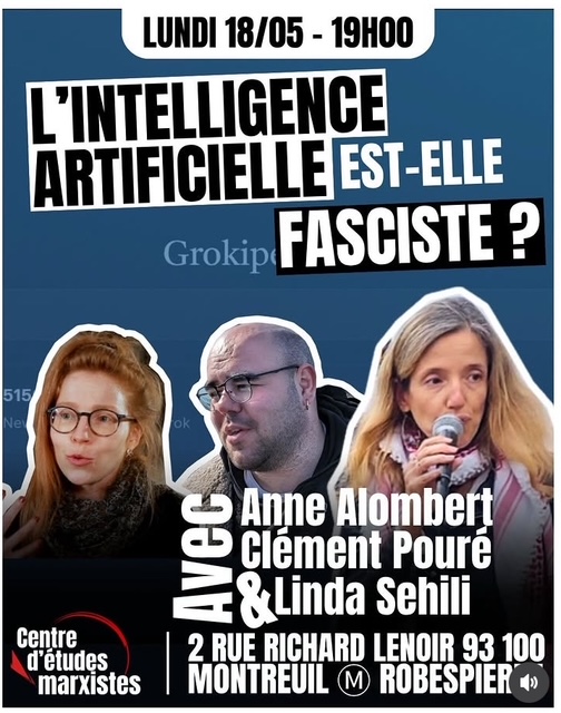 Centre d'études marxistes « L'intelligence artificielle est-elle fasciste? », avec Anne Alombert, Clément Pouré et Linda Sehili