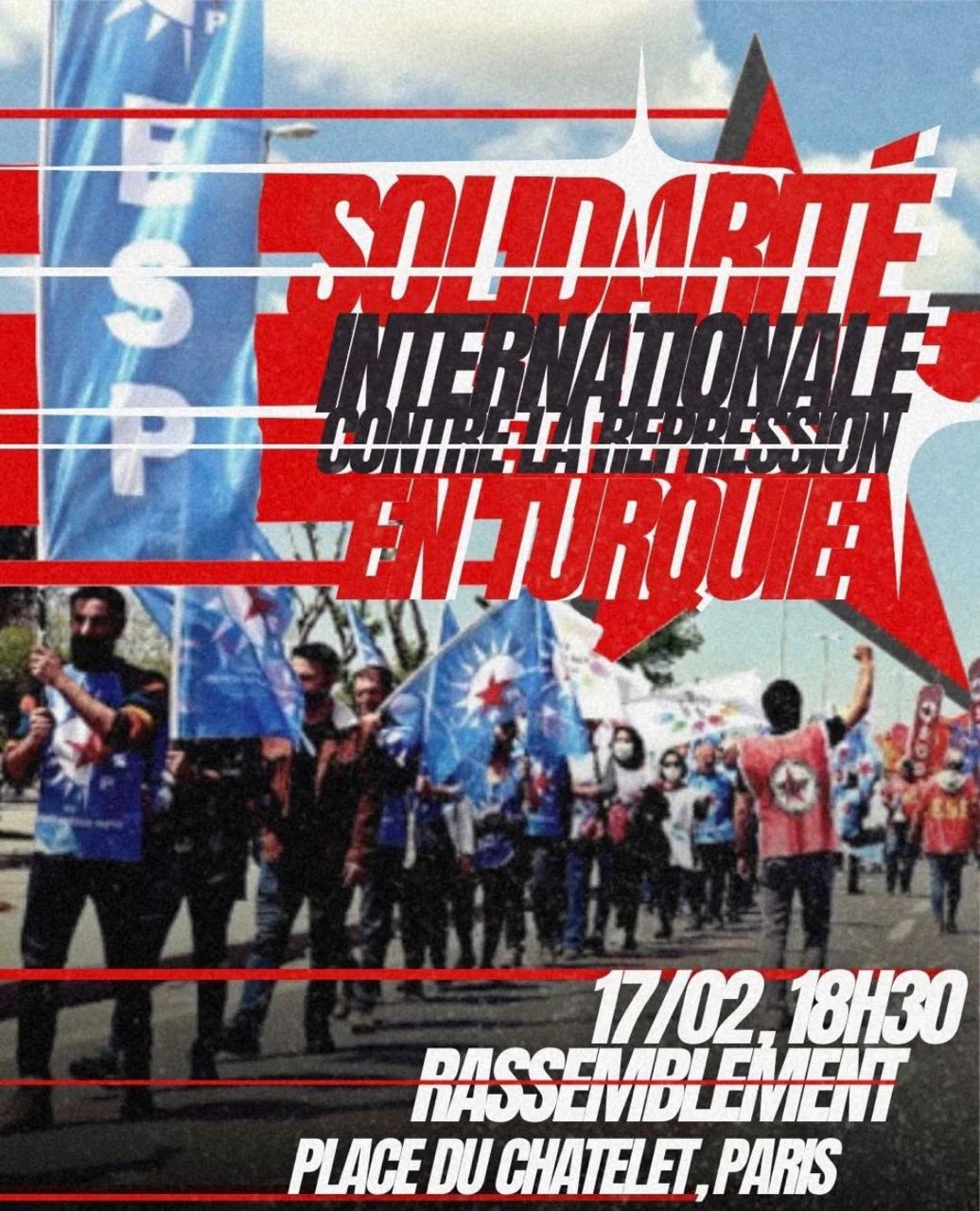 Mardi 17 février 2026 - 18h00 Rassemblement de solidarité internationale contre la répression en Turquie. Rendez-vous mardi 17 février 2026 à 18h30 place du Châtelet. Copied to clipboard
