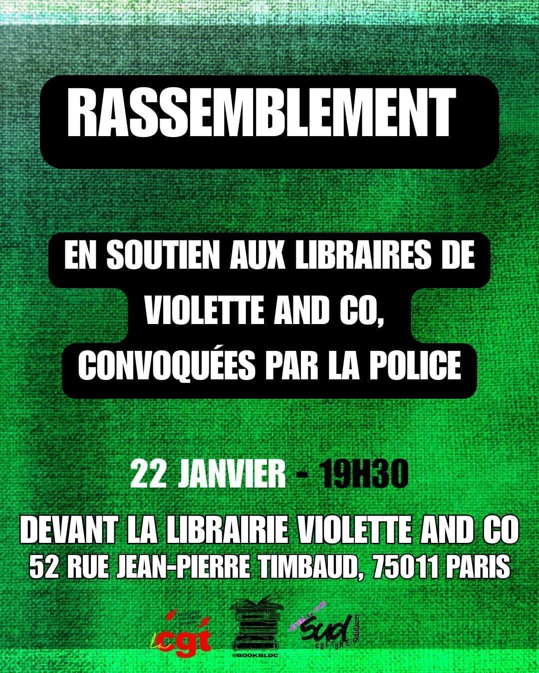 Rassemblement de soutien aux libraires de « Violette and co », perquisitionnéEs par la police.