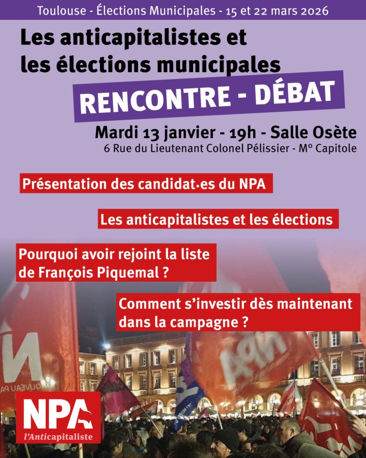 Toulouse (31) : Rencontre-débat « Les anticapitalistes et les élections municipales »