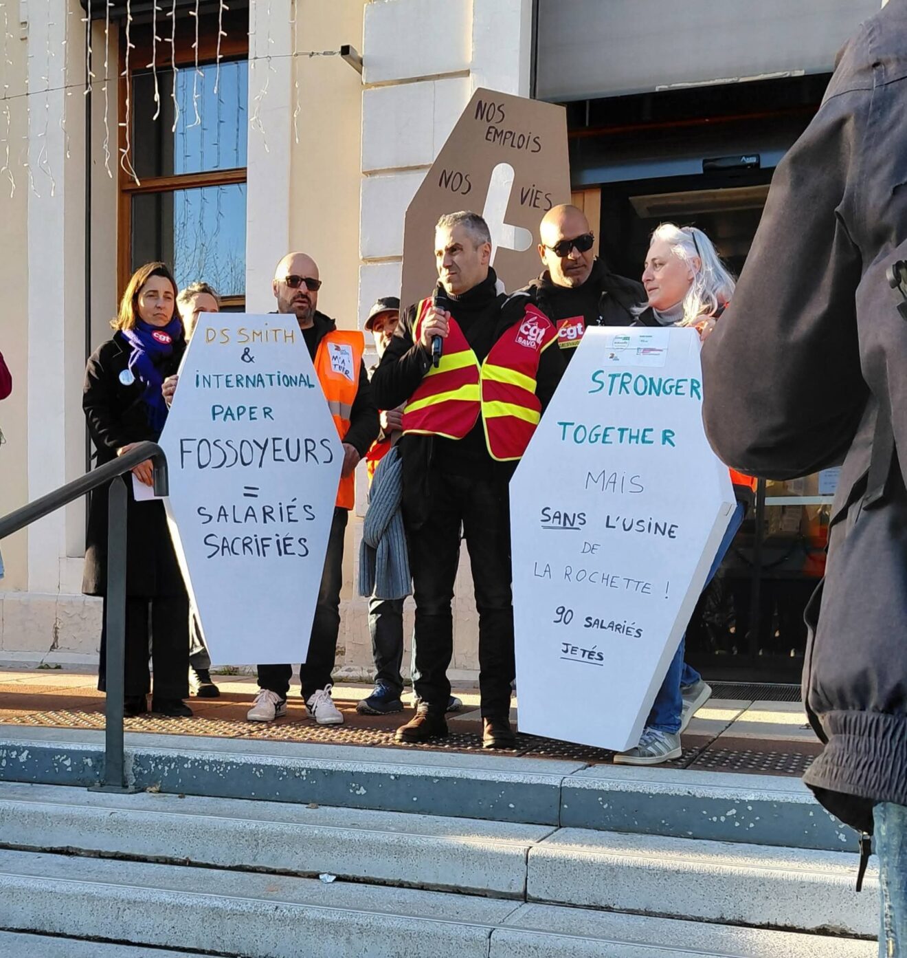 Environ 400 manifestantEs se sont renduEs devant la mairie de Crolles où des prises de parole ont eu lieu. Les salariéEs de Teisseire se sont expriméEs en premier pour redire leur détermination. Une ancienne élue CGT de l’usine de Vencorex de Pont-de-Claix, qui a vu la disparition de plus de 400 emplois l’année passée, a rappelé toute la détermination qu’il faut pour maintenir un piquet de grève sur plusieurs semaines. Sophie Binet a ensuite affirmé le soutien de la confédération aux luttes des salariéEs face aux suppressions massives d’emplois en cours en France. Fabien Gay, sénateur PCF et auteur du rapport sur les 211 milliards d’aides aux entreprises, est intervenu sur les responsabilités de l’État et l’absence totale d’engagements sociaux et environnementaux des entreprises en contrepartie des milliards d’argent public qu’elles perçoivent. Le député EÉLV et une représentante du PS se sont ensuite expriméEs dans un brouhaha de contestation lié à leur vote pour le budget Lecornu de la sécurité sociale deux jours auparavant.