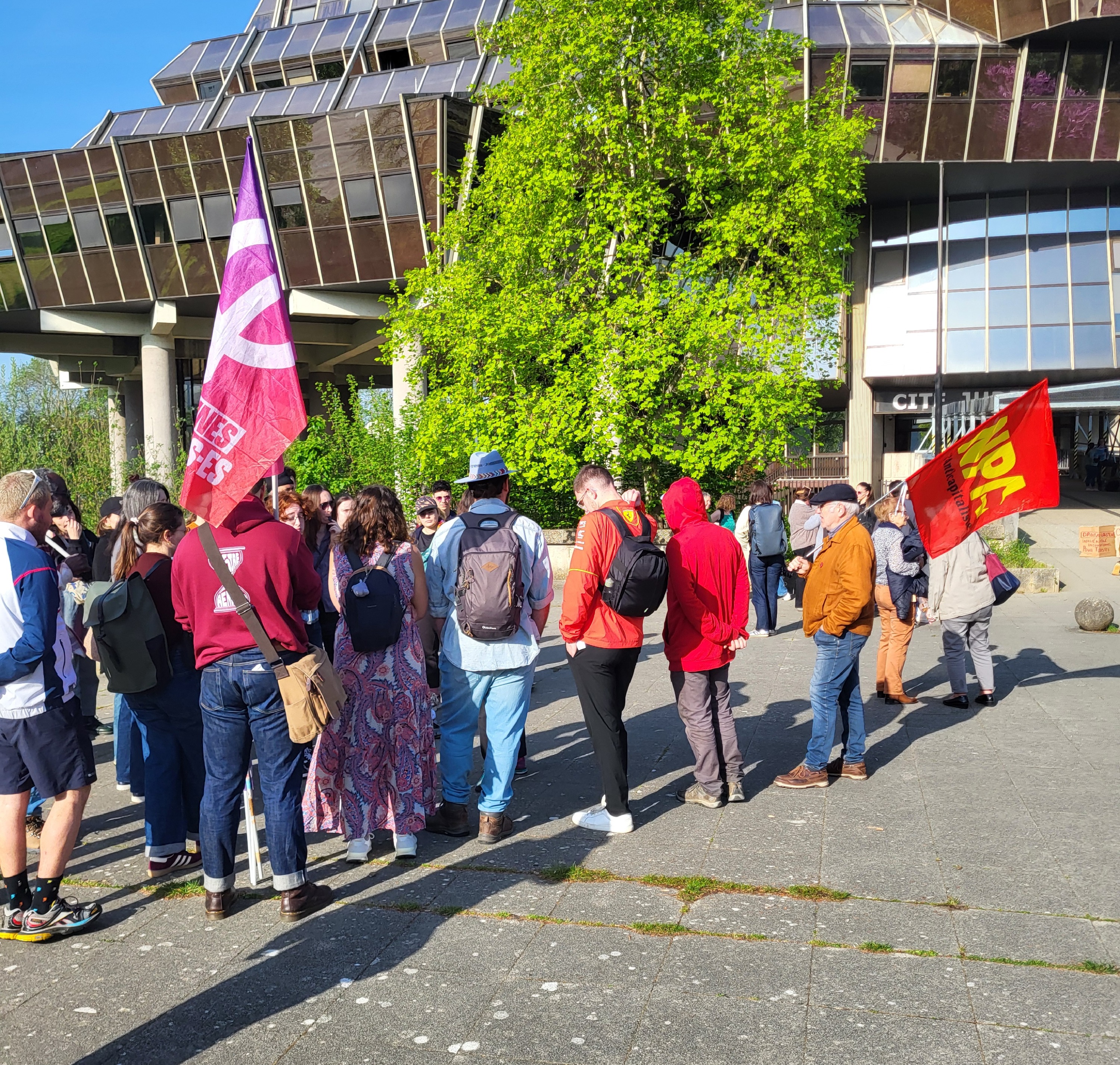 Le jeudi 9 avril, le jugement d’expulsion devait concerner cinq familles. Nous étions donc une bonne cinquantaine de personnes, rassemblées dès 9 heures devant le tribunal judiciaire de Rennes, à l’appel du collectif Rennes sud mobilisé, qui soutient les familles. Sa porte-parole nous a expliqué dans quelle mesure, depuis le passage de la loi contre le narcotrafic l’année dernière, des droits fondamentaux comme le droit au logement et le droit à la vie privée disparaissent au nom de la soi-disant « sécurité ».