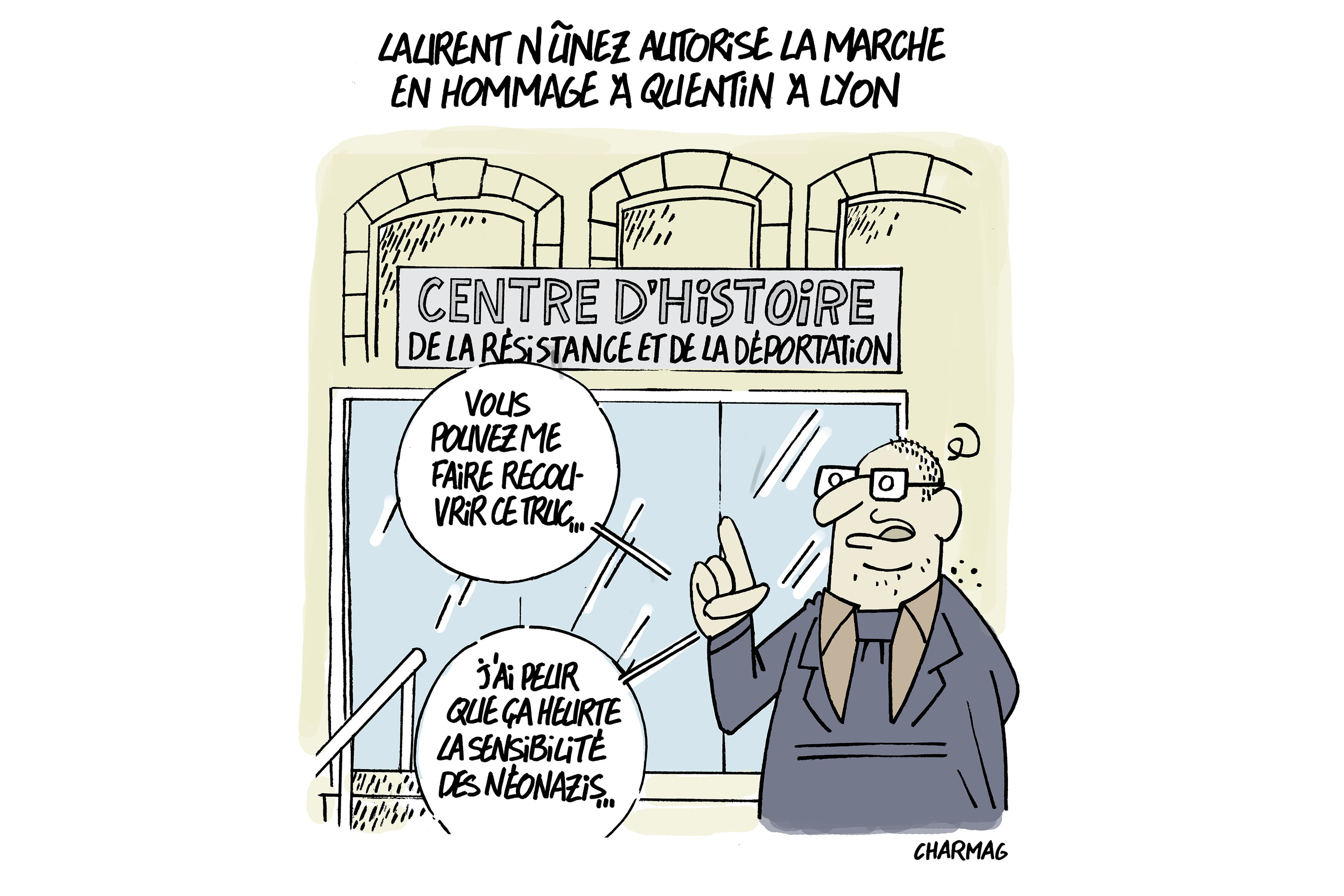 Depuis quelques jours, cette violence s’est accrue. Permanences politiques vandalisées, locaux syndicaux et politiques ciblés, menaces de mort, campagnes de harcèlement en ligne : les attaques se sont multipliées. À Lyon, plus de 3 000 personnes ont marché derrière des banderoles faisant du fasciste décédé un « martyr », aux côtés de figures connues de la mouvance nationaliste-révolutionnaire. Des saluts nazis, insultes racistes et symboles néofascistes ont été signalés à la justice, pendant que nombre de commentaires soulignent que la marche s’est bien passée car il n’y a pas eu de vitrine ou de poubelle endommagée…