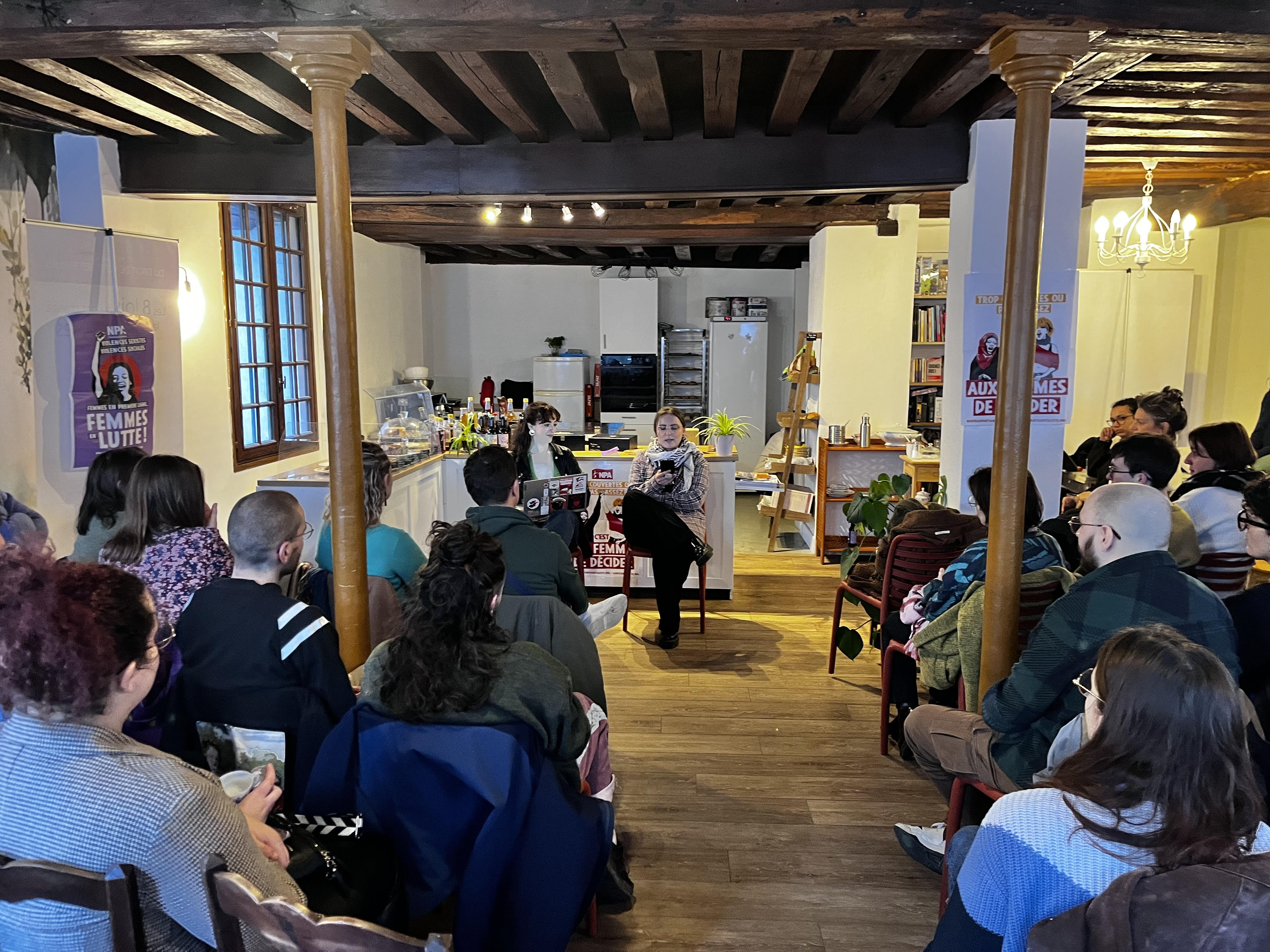 Une cinquantaine de personnes s’est retrouvée dans un salon de thé, dont l’ambiance cosy donnait envie de débattre honnêtement et de s’écouter.