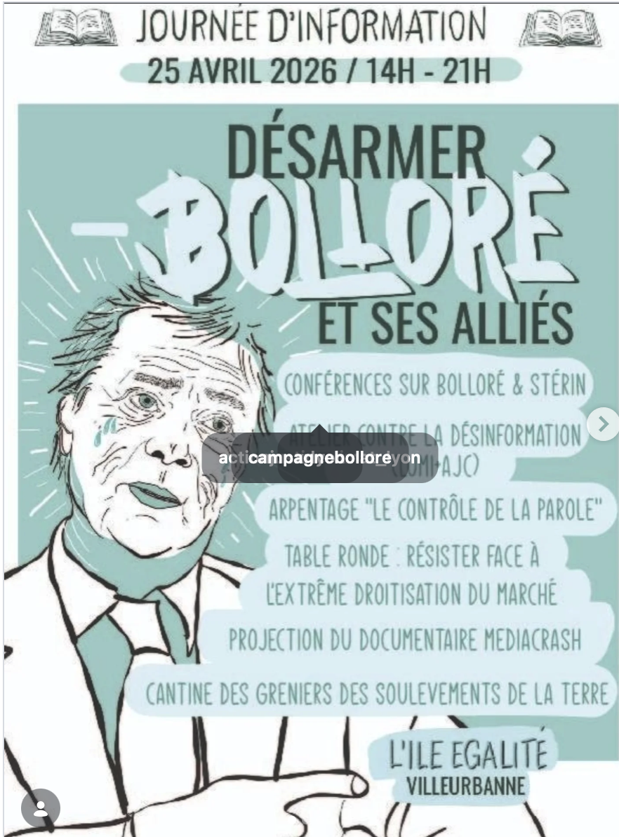 Journée d'information « Désarmer Bolloré et ses alliés », organisée par extinction rébellion, Action justice climat, les Soulèvements de la Terre et le NPA - l'Anticapitaliste.