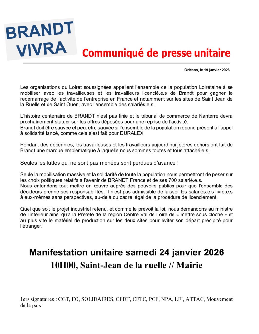 Saint-Jean-de-la-Ruelle (45) : Manifestation unitaire contre la fermeture de Brandt